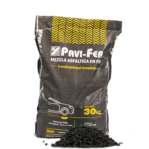 Es una mezcla asfáltica realizada en caliente de aplicación en frío. Es un producto verdaderamente efectivo para el tratamiento de baches, fisuras, ejecución de pavimentos urbanos, veredas, senderos, caminos internos, patios y entradas de autos.